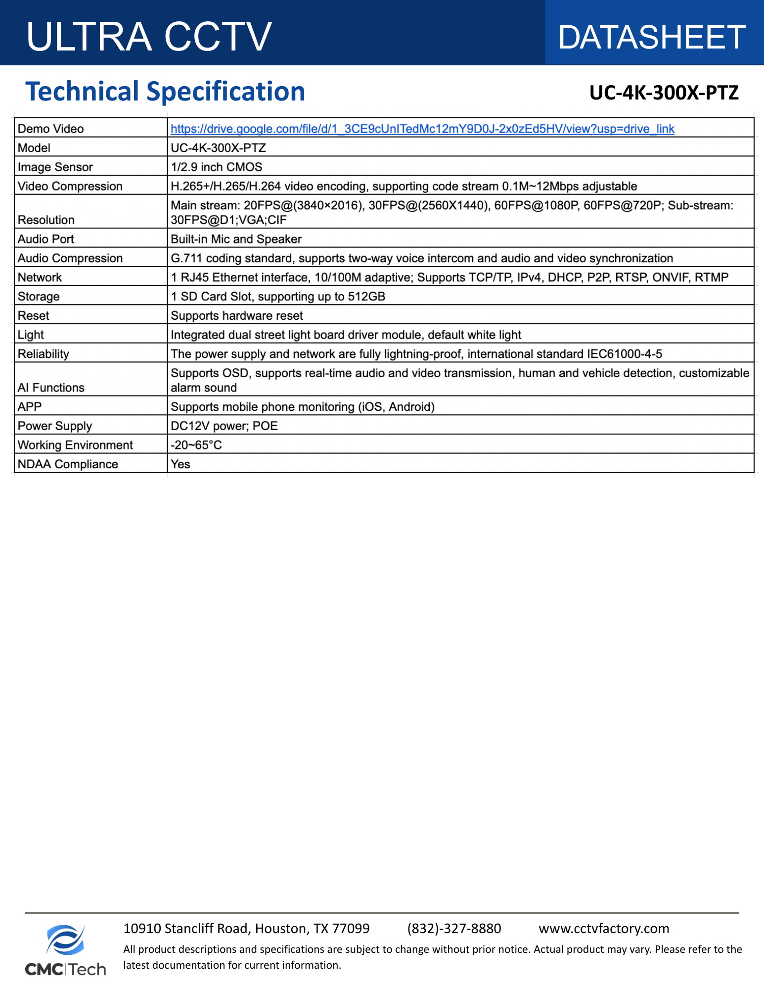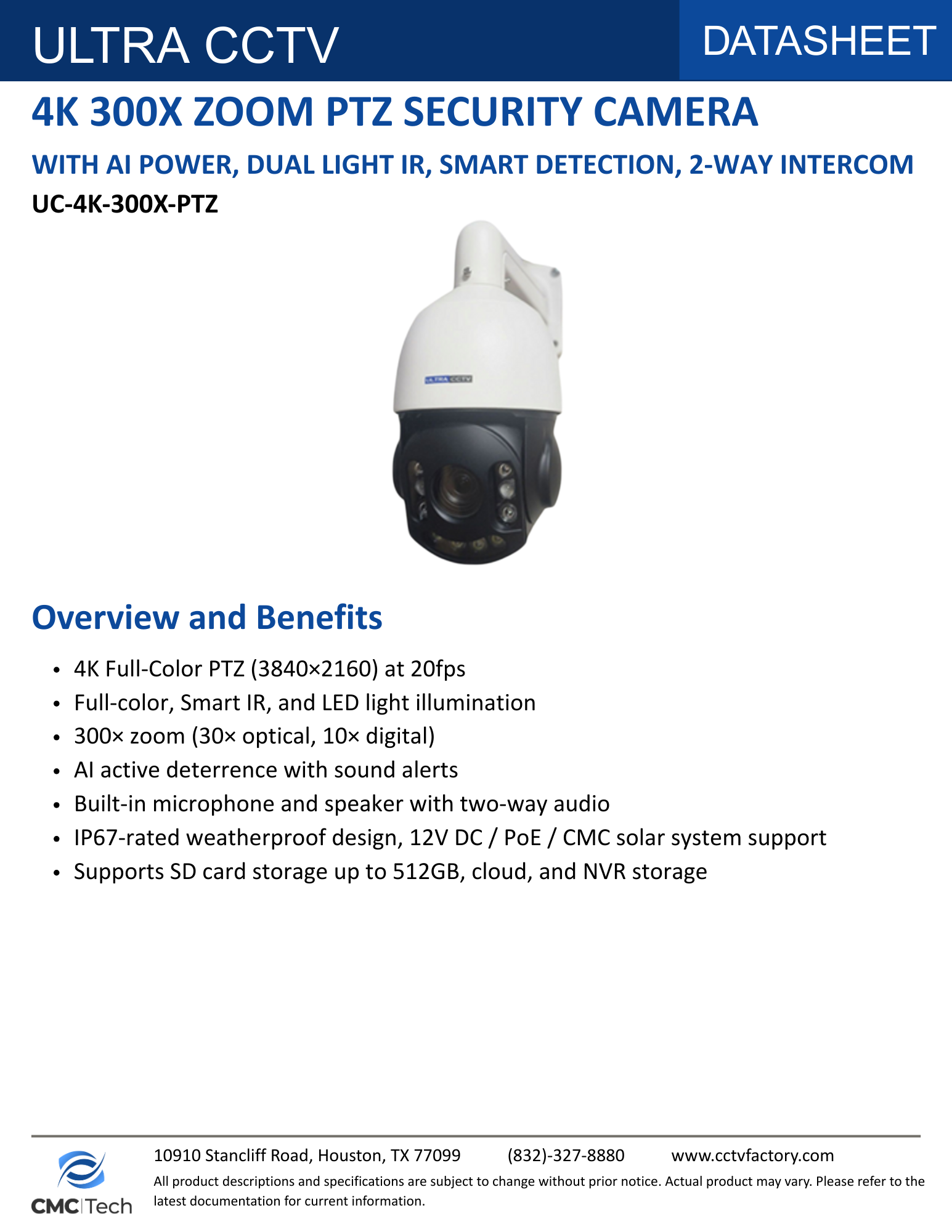 CMC TECH Add to Cart 5M 300X ZOOM AI-POWERED PTZ SECURITY CAMERA with SMART DETECTION, DUAL LIGHT IR, 2- WAY INTERCOM MSRP: Was: Now: $319.00 Check out the zoom quality of this camera! Demo Video