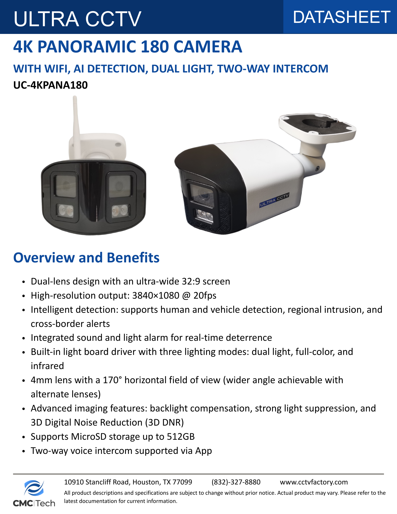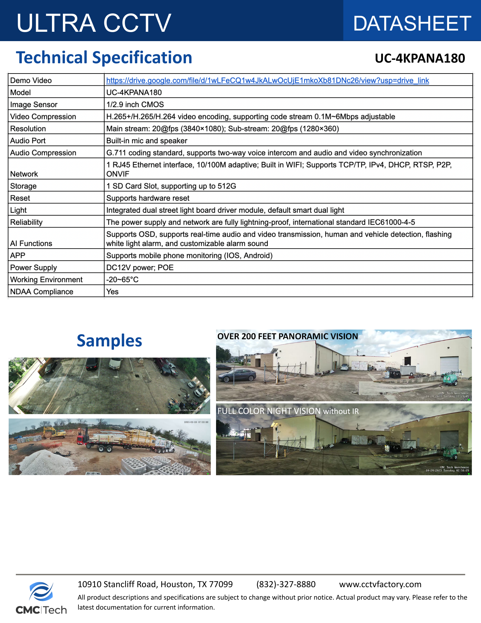 CMC TECH Add to Cart 4K DOME 8MP AI POWERED DUAL-LIGHT CAMERA with SMART DETECTION, VOICE INTERCOM MSRP: Was: Now: $109.00 Check out the video quality of this camera!Demo Video